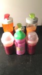 Het vroeg ook best wel wat organisatie om de sapjes op tijd klaar te maken. De eerste dagen stond ik vroeger op om wederhelft zijn sapje te maken. Tegen dat het klaar en op was, moest hij alweer vertrekken. Dan kon ik beginnen aan de sapjes voor tussendoor. Na enkele dagen maakte ik ’s avonds onze voorraad sap (een drietal verschillende) klaar voor de volgende dag. Gelukkig kunnen wij ’s middags thuis komen lunchen, want anders moest ook dat sapje ’s ochtends klaargemaakt worden. Mensen die een hele dag uit werken zijn, moeten dus in principe 3 à 4 sapjes maken om de werkdag door te komen.