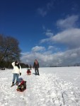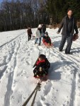 We arriveerden voor de grote drukte, rond 9u30 en huurden twee extra sleetjes waarmee we onmiddellijk naar de sleepiste trokken. Die hadden we het eerste uur voor ons alleen. img_9960
