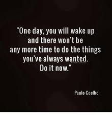 Maar vandaag besef ik nog maar eens: later is al lang begonnen. We moeten leven in het hier en nu. Nu doen waar we van dromen. We moeten leven en ervan genieten. Zo veel het kan.